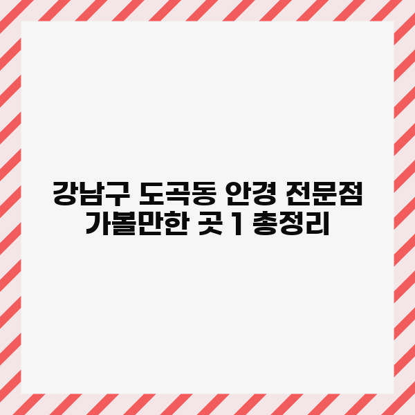 오늘 소개해 드린 강남구 도곡동 안경 전문점 정보가 도움이 되셨기를 바랍니다. 각 매장마다 특징이 있으니, 개인 취향과 방문 목적, 예산 범위를 고려해 선택하시길 권장합니다.
