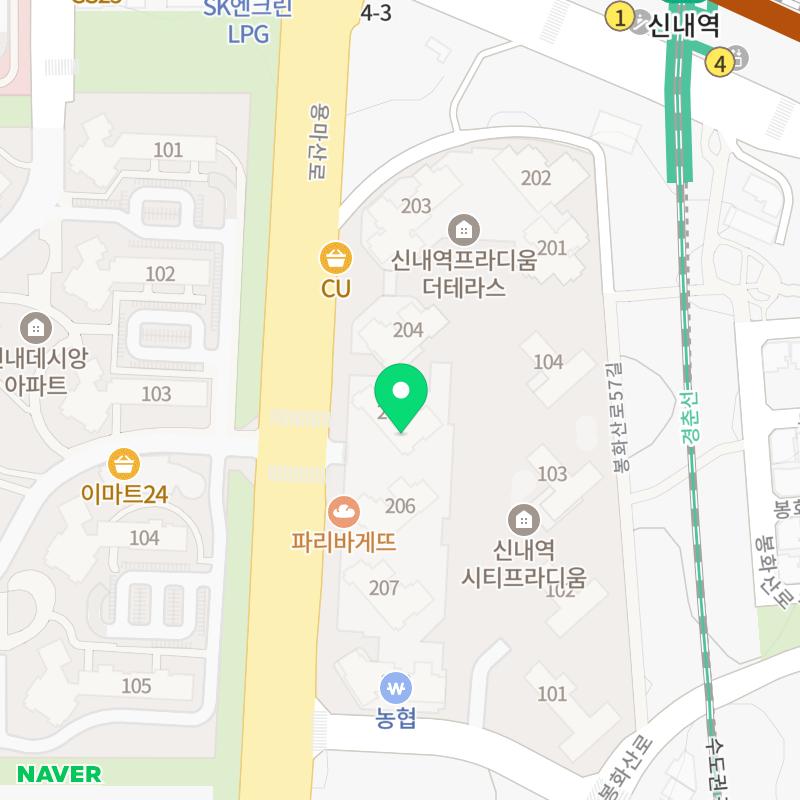 📍 주소: 서울특별시 중랑구 용마산로 670 신내역프라디움 더테라스 상가 C동 205